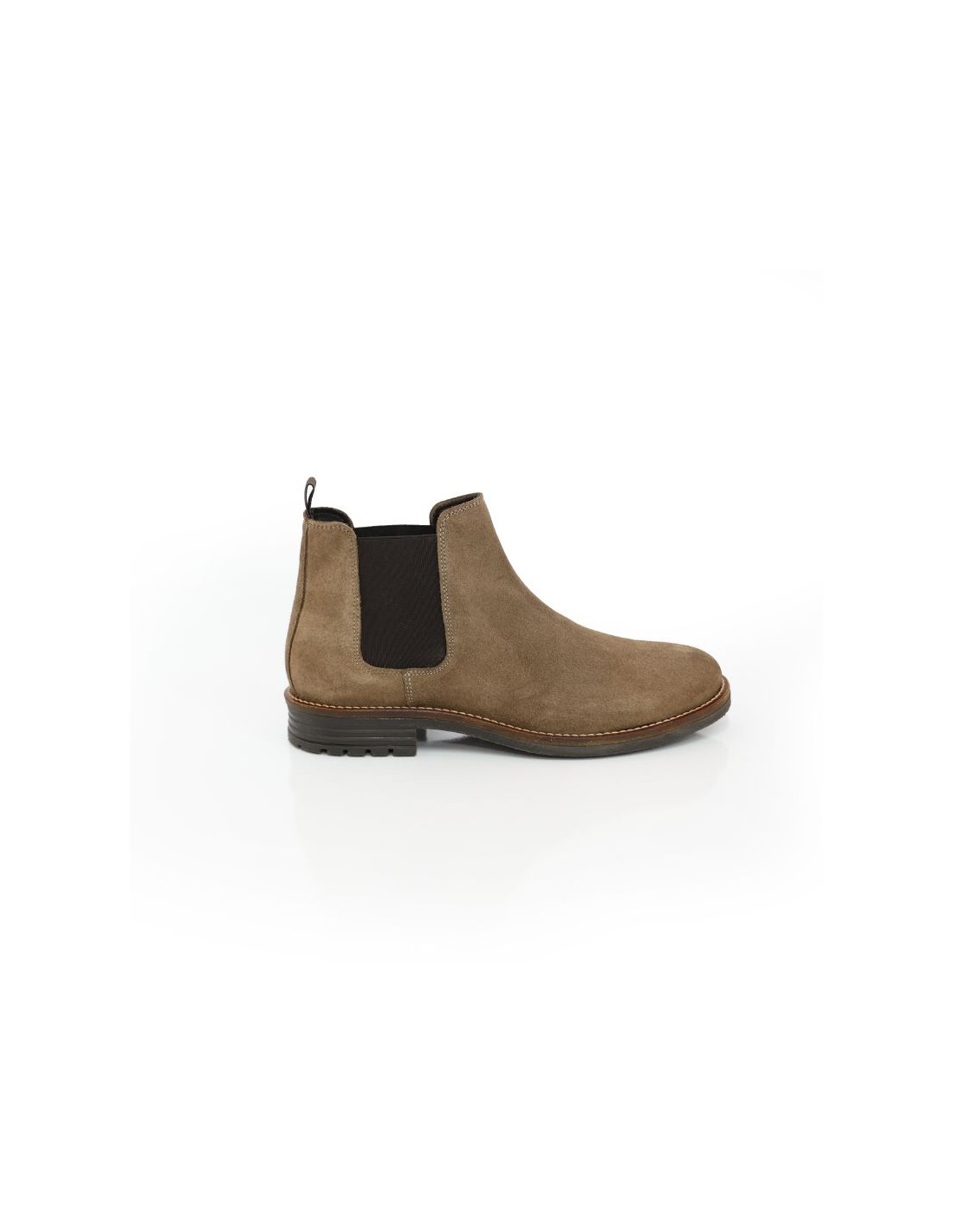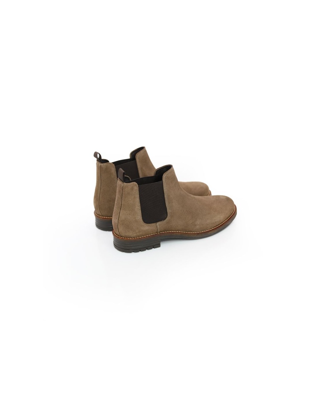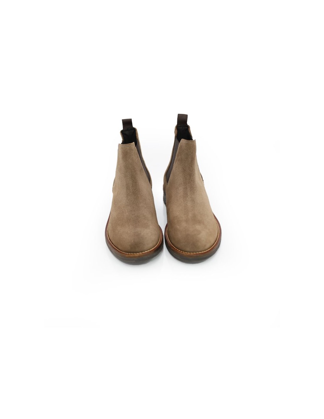 Botines Chelsea de ante con elástico lateral color beige. Ref: SIPAME-TAUPE