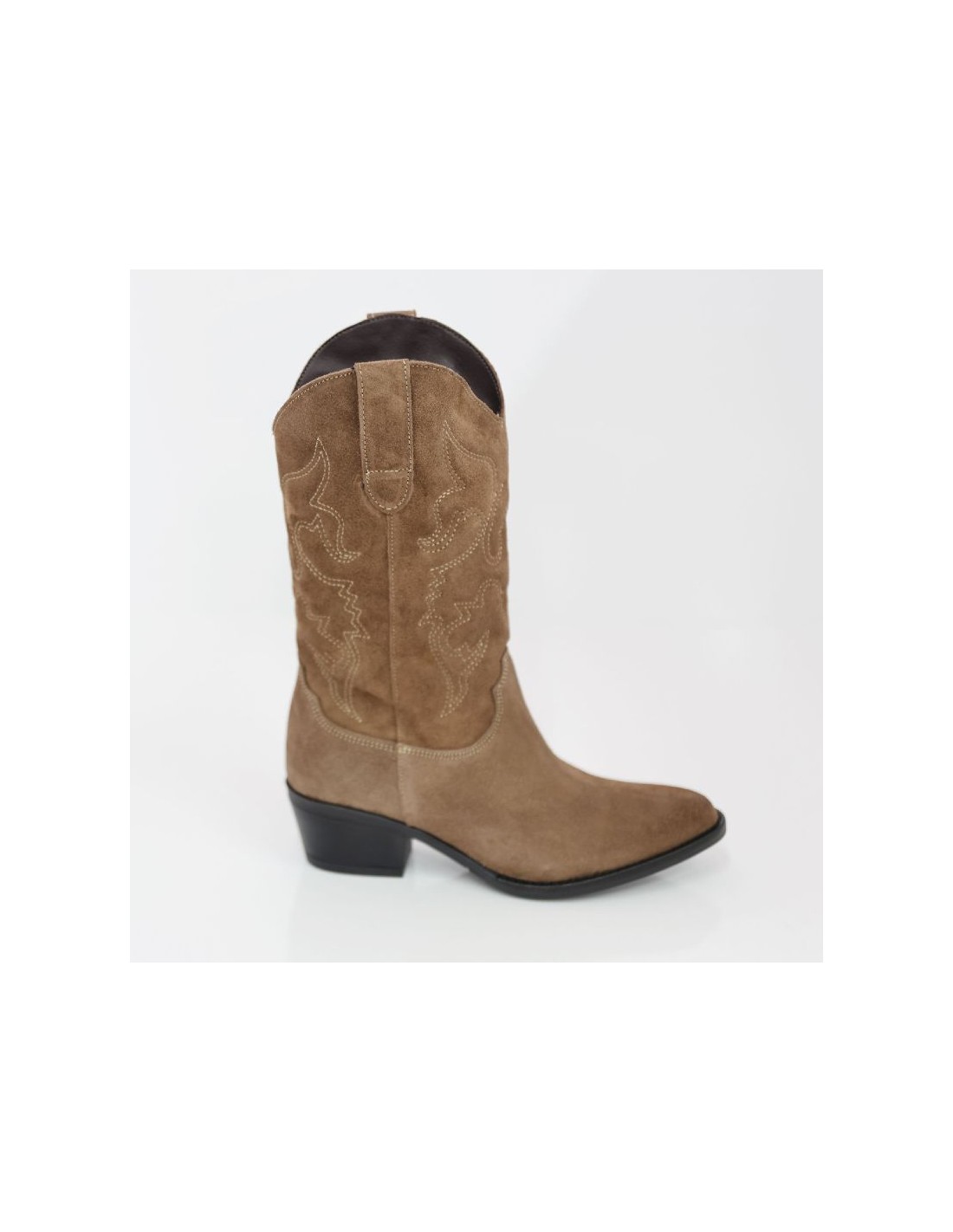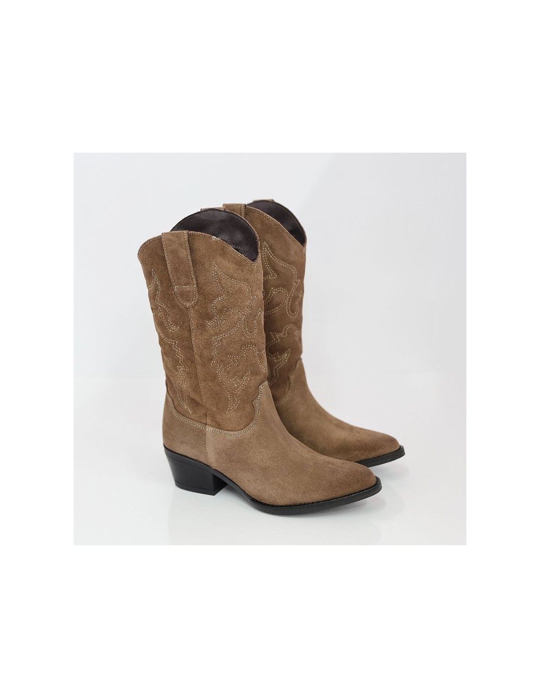 Botas de mujer de ante con costura en contraste color cuero