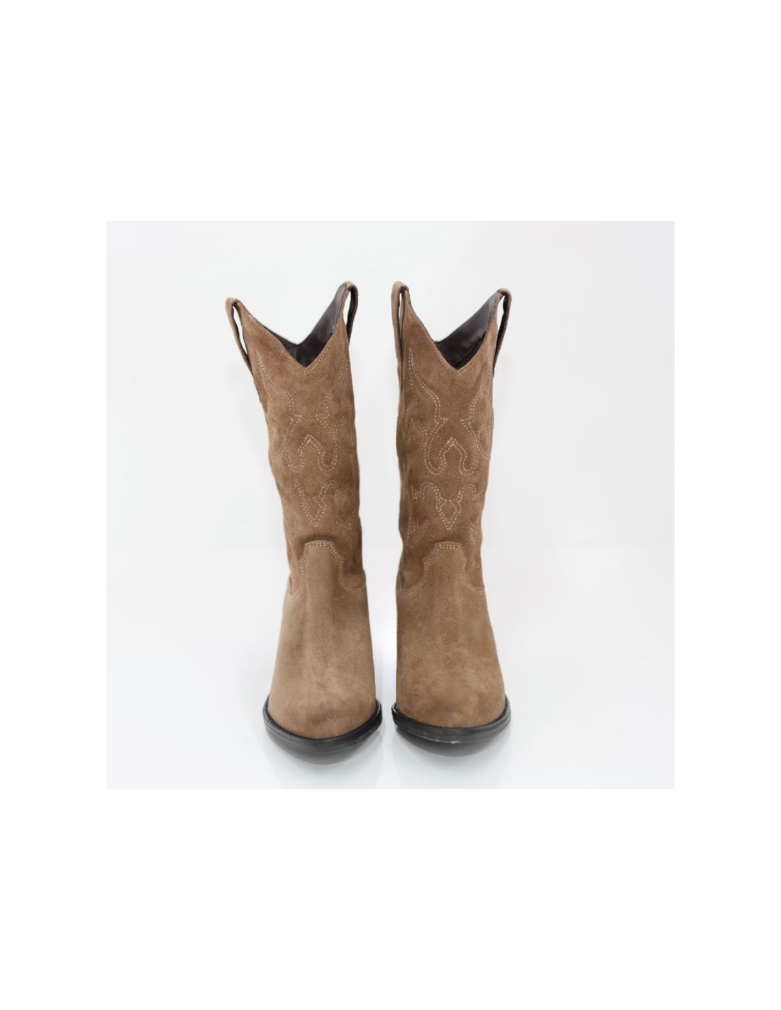 Botas de mujer de ante con costura en contraste color cuero. Ref: W-GREN-CUERO