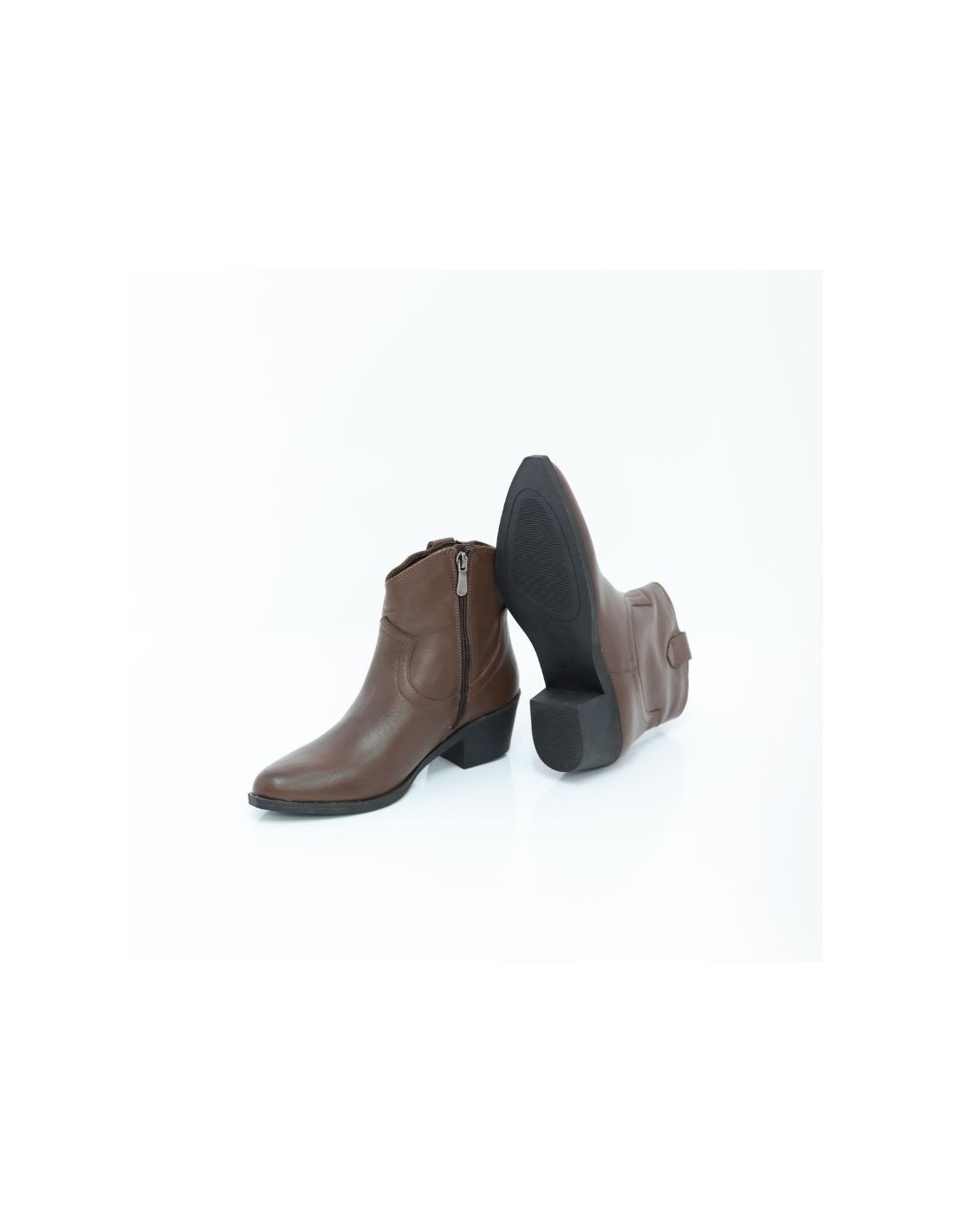 Botines de mujer de piel acabado a mano color marrón