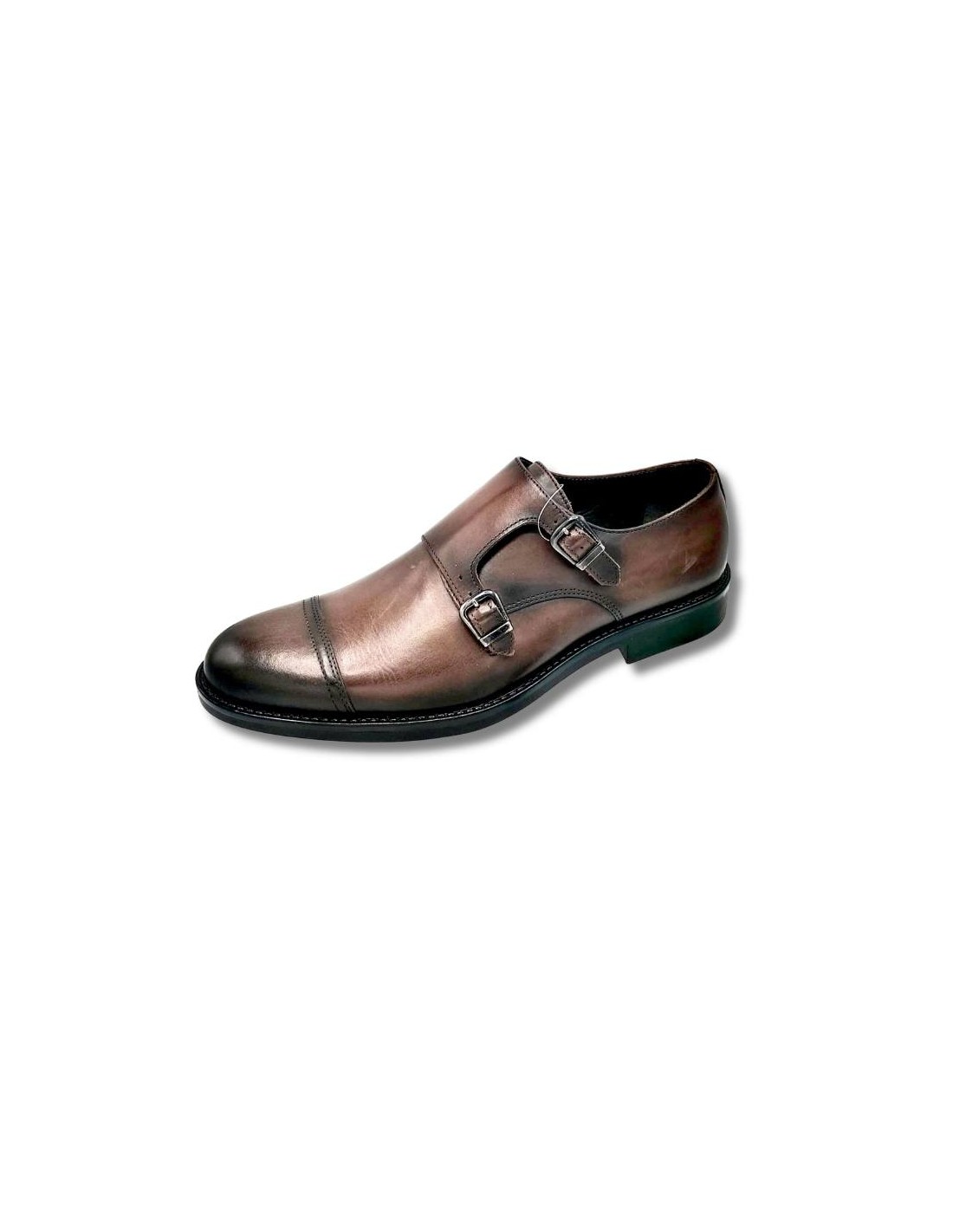 Zapato con hebilla de piel con dos hebillas color cuero. Ref: VISAMOR-CUERO