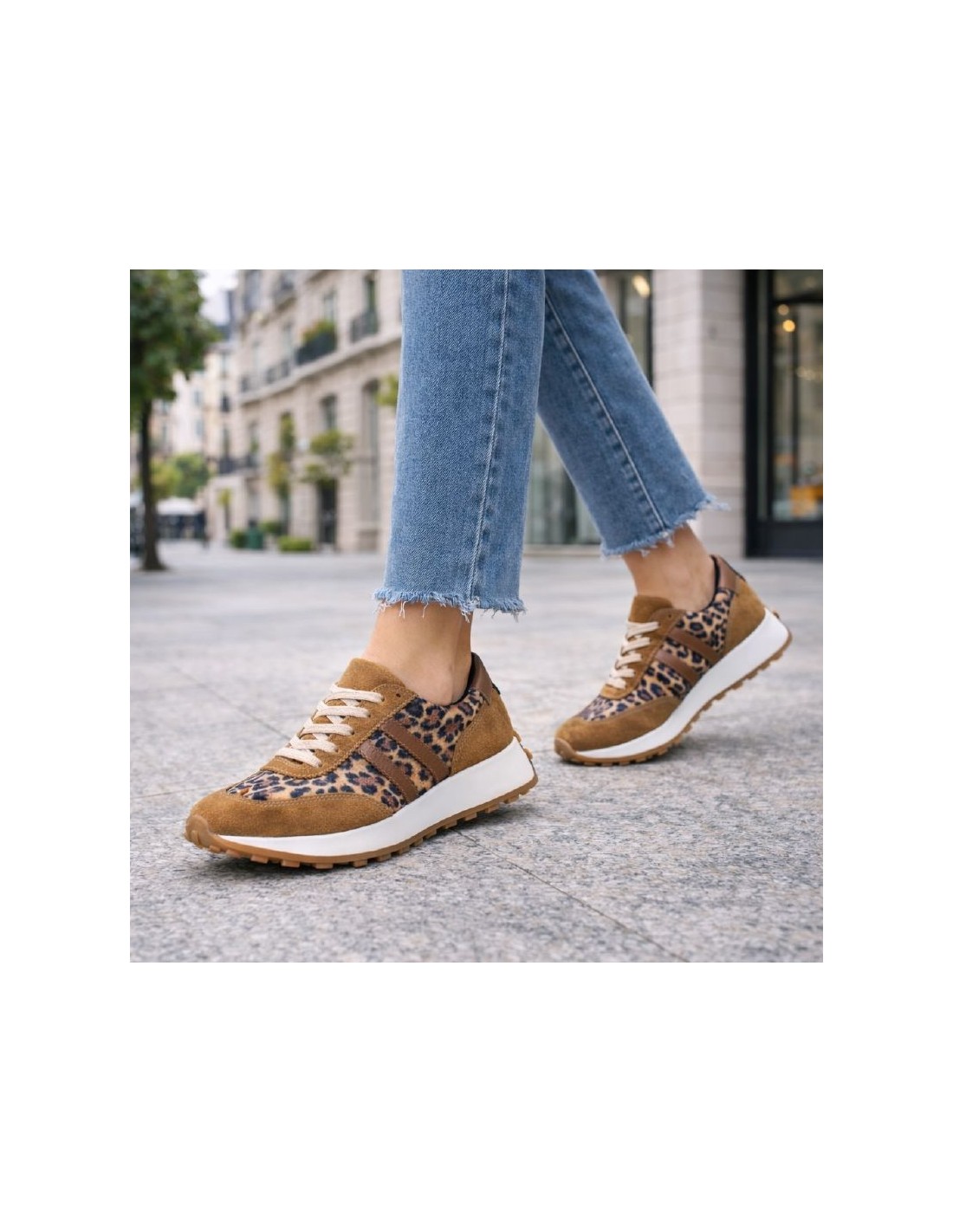 Deportivo de mujer de ante con tejido de fantasía color marrón