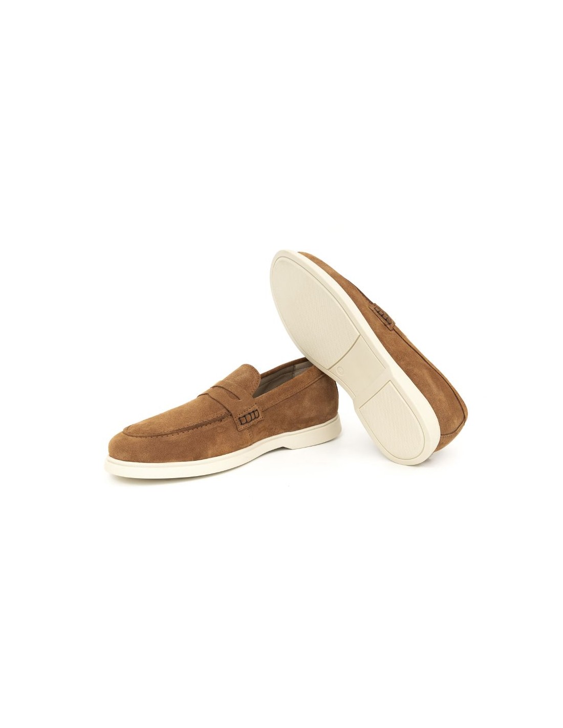 Mocasín de ante con costura color camel