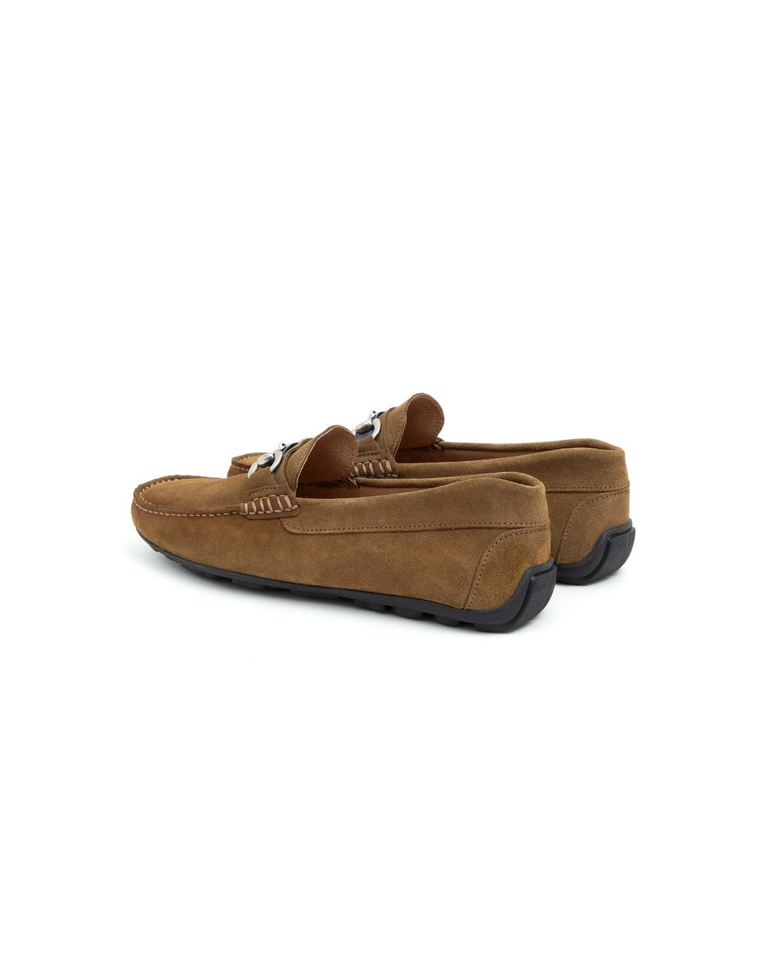 Mocasín de ante con hebilla color cuero