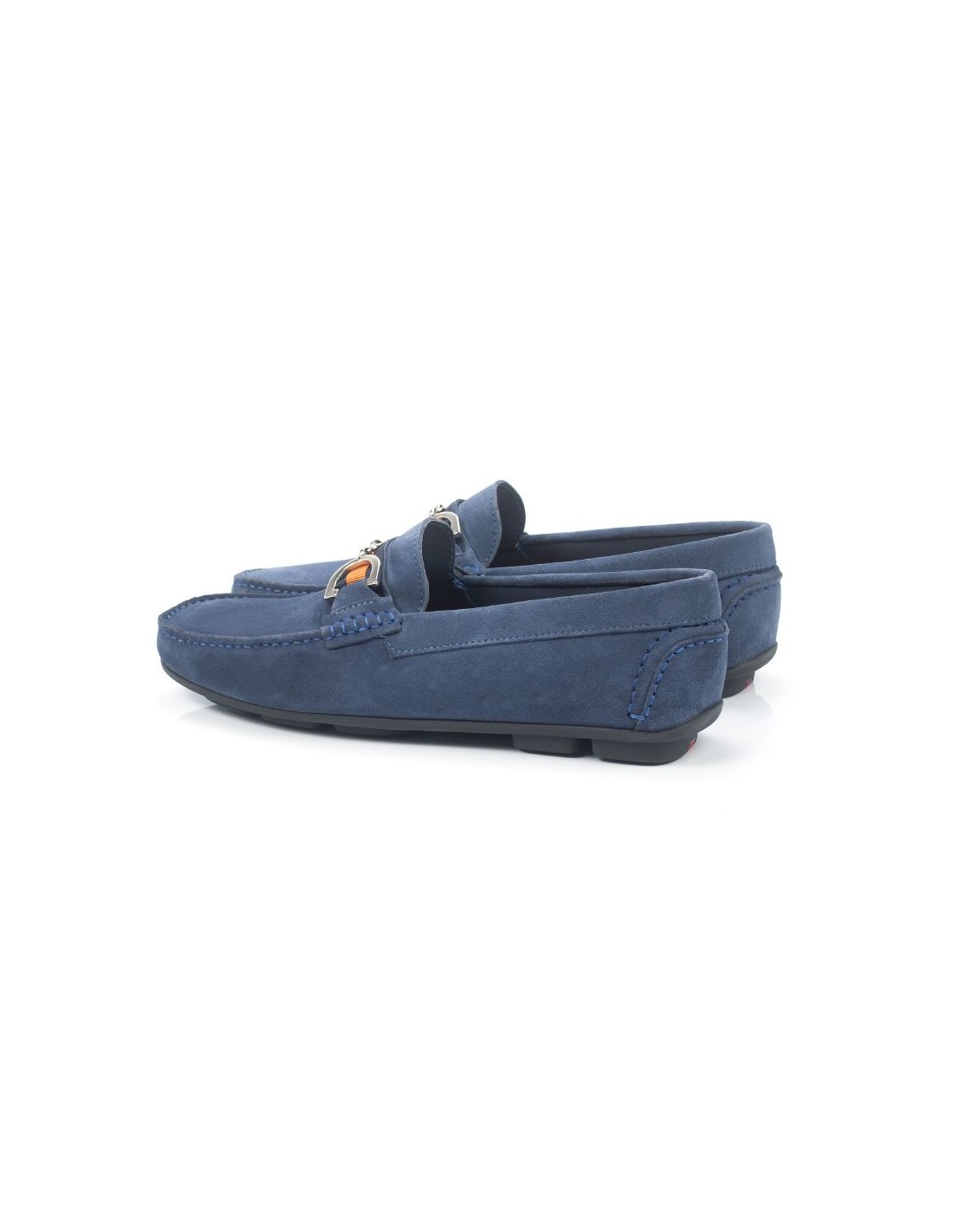 Mocasín de ante con hebilla color azul
