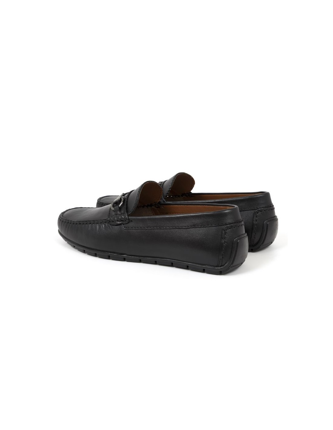 Mocasín de piel con aplique metálico color negro
