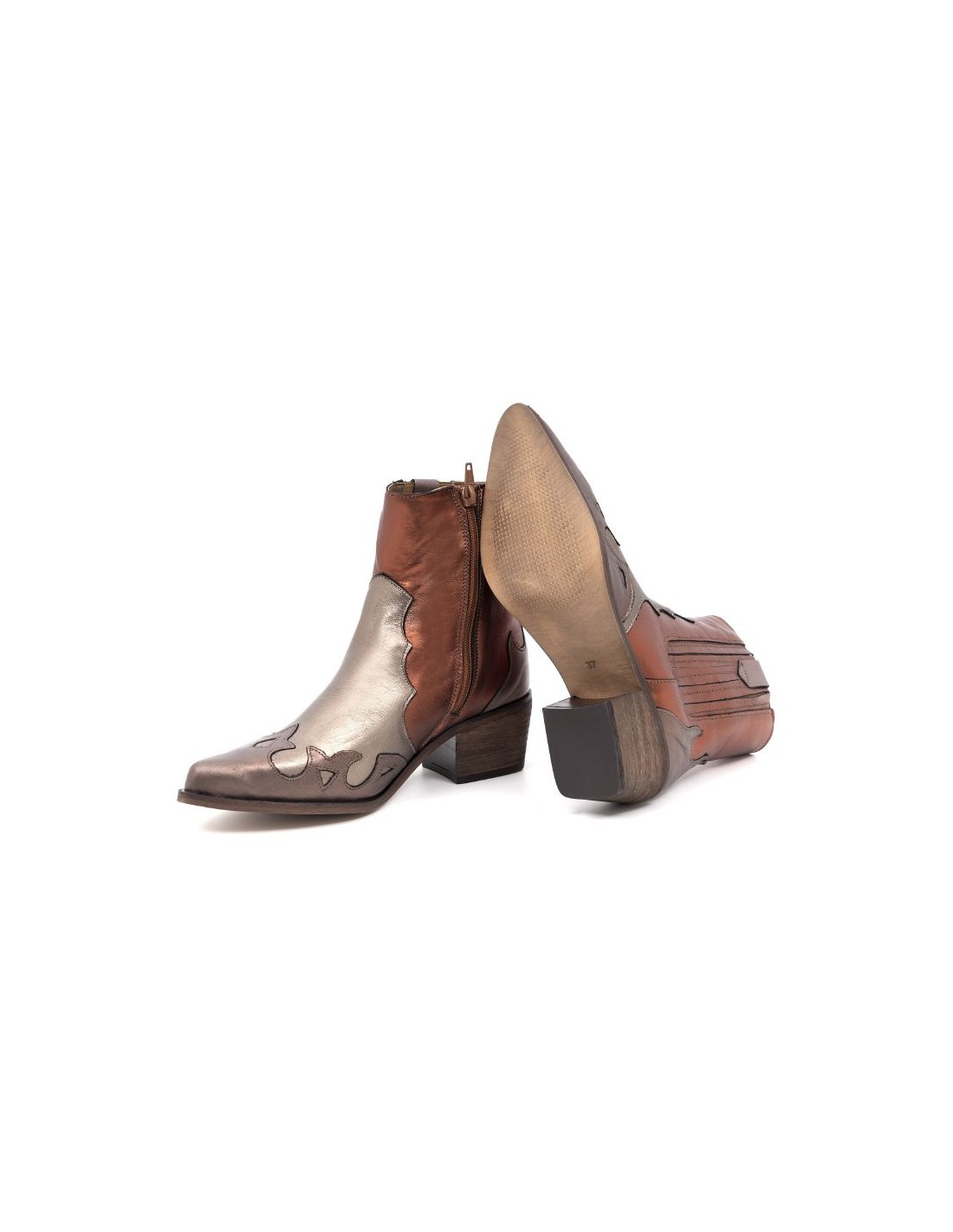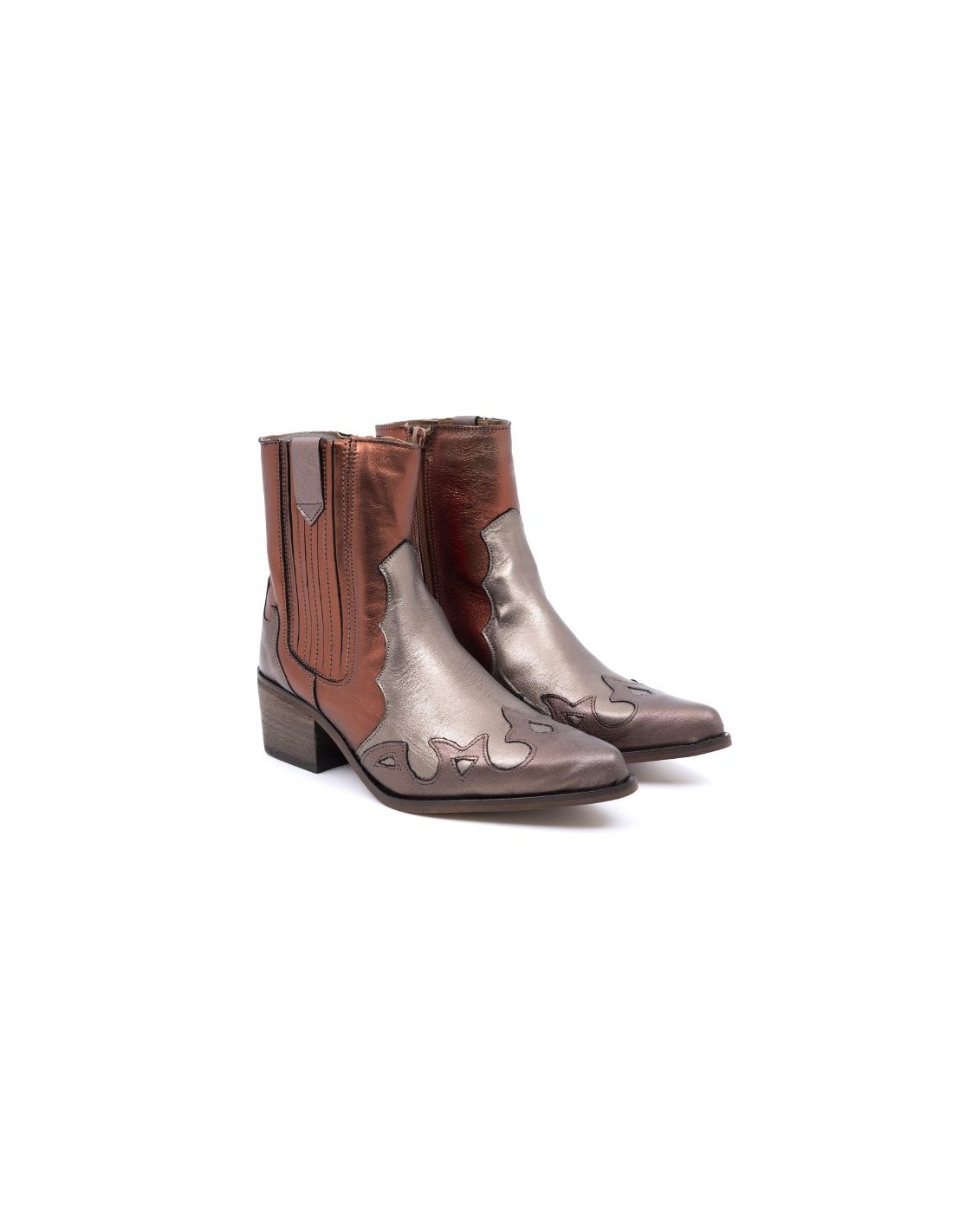 Botas de mujer liso combinado de pieles color marrón