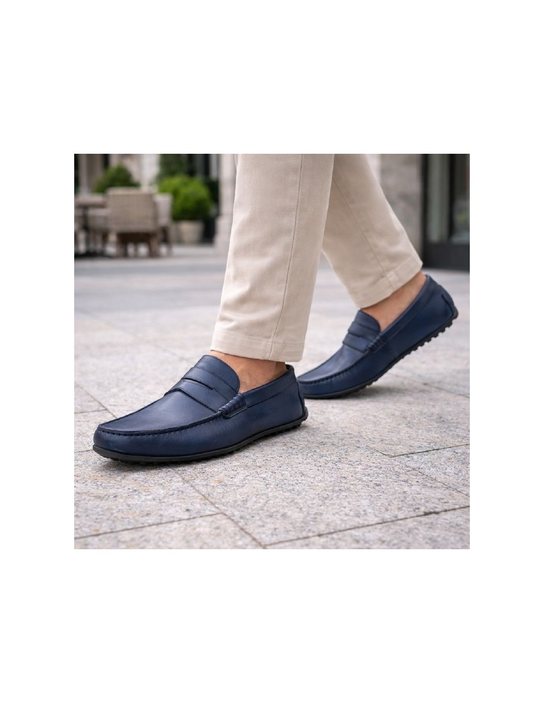 Mocassin de peau bleu EDOL-NAVY. Ref: EDOL-NAVY
